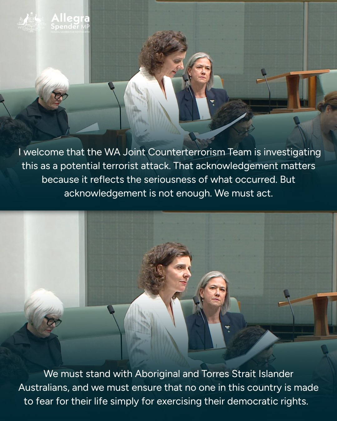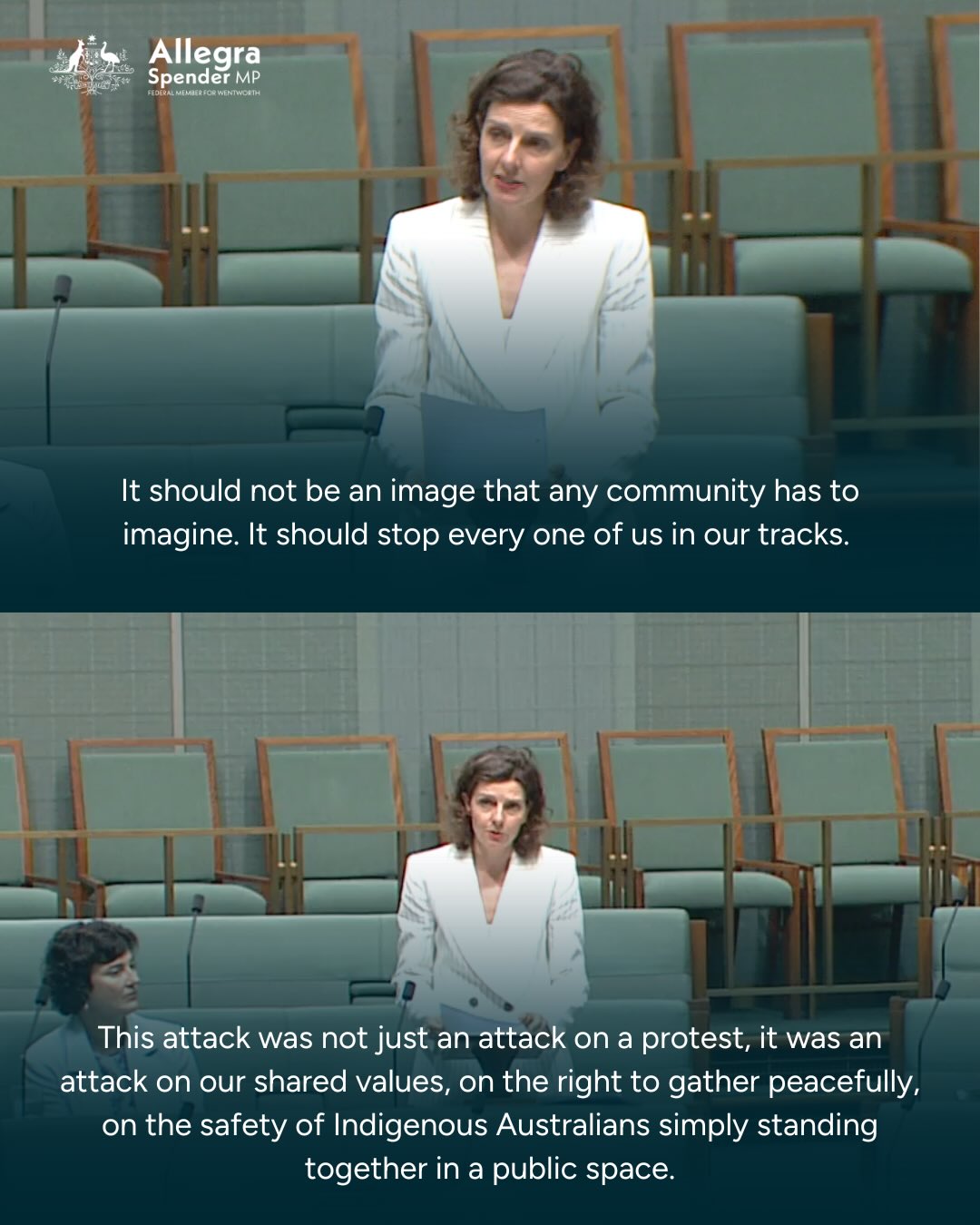 This attack was not just an attack on the safety of Indigenous Australians or an attack on our democratic right to protest, but it was an attack on our shared values. Australians all across the country are rightfully horrified. Everyone in this country should be able to gather peacefully without any threat or fear of violence.