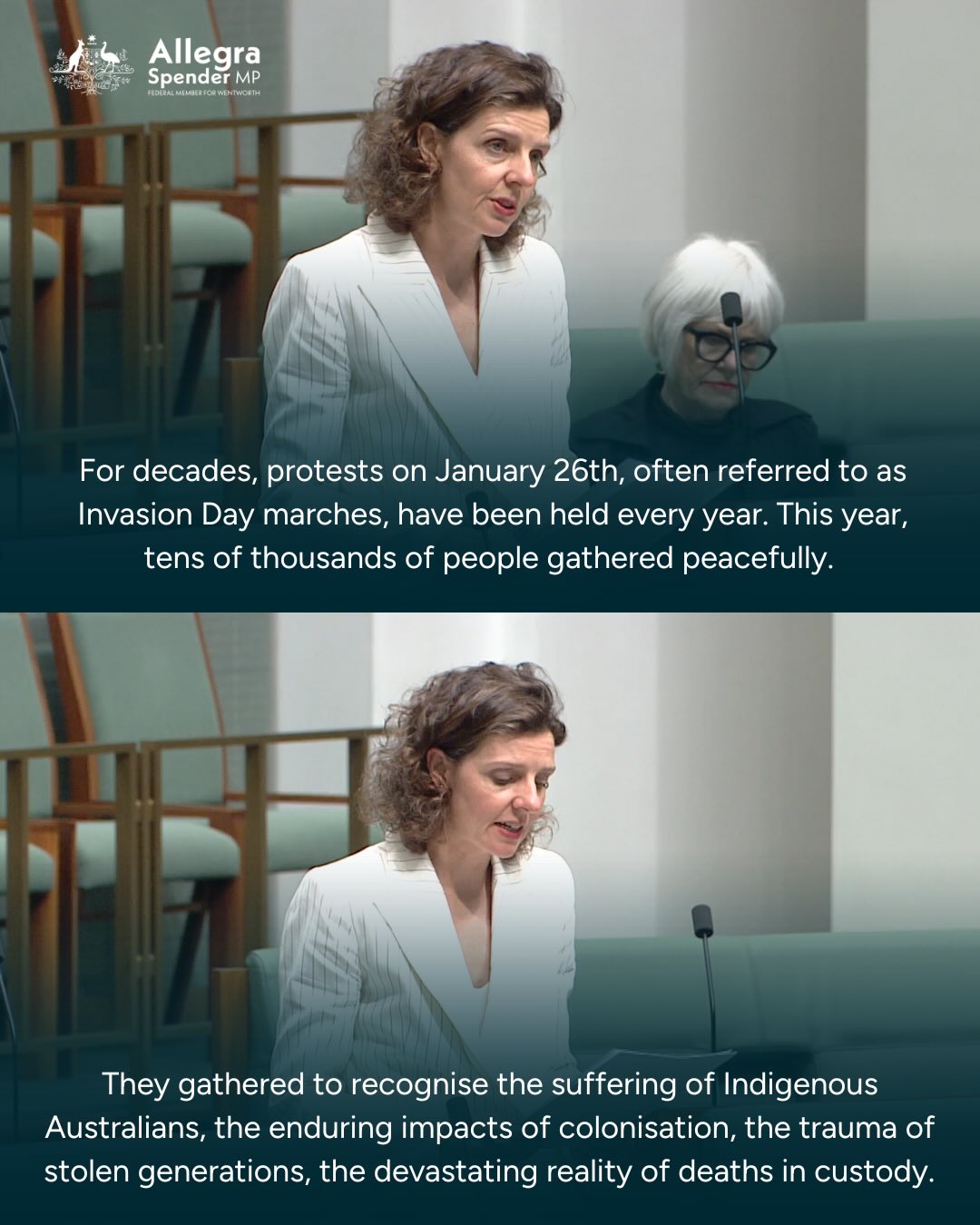 Today I seconded @katechaneymp's motion in Parliament to condemn the horrendous attack against peaceful protestors marching at the Invasion Day Rally in Boorloo/Perth on January 26th.
