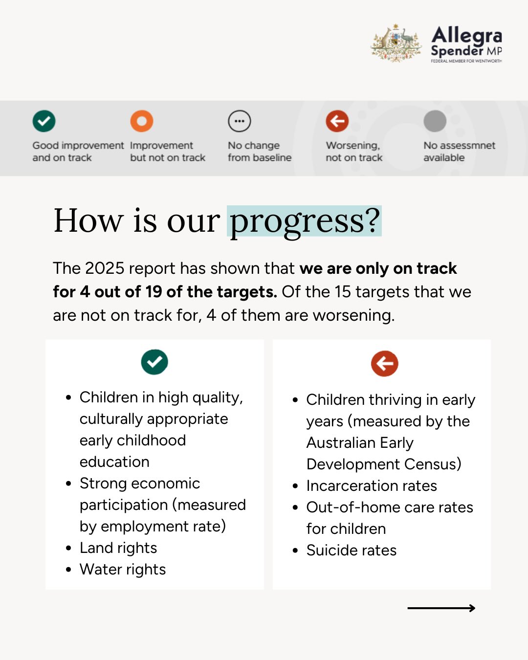 Today's release of the 2025 Closing the Gap Annual Report revealed that we are on track for just 4 of the 19 targets.