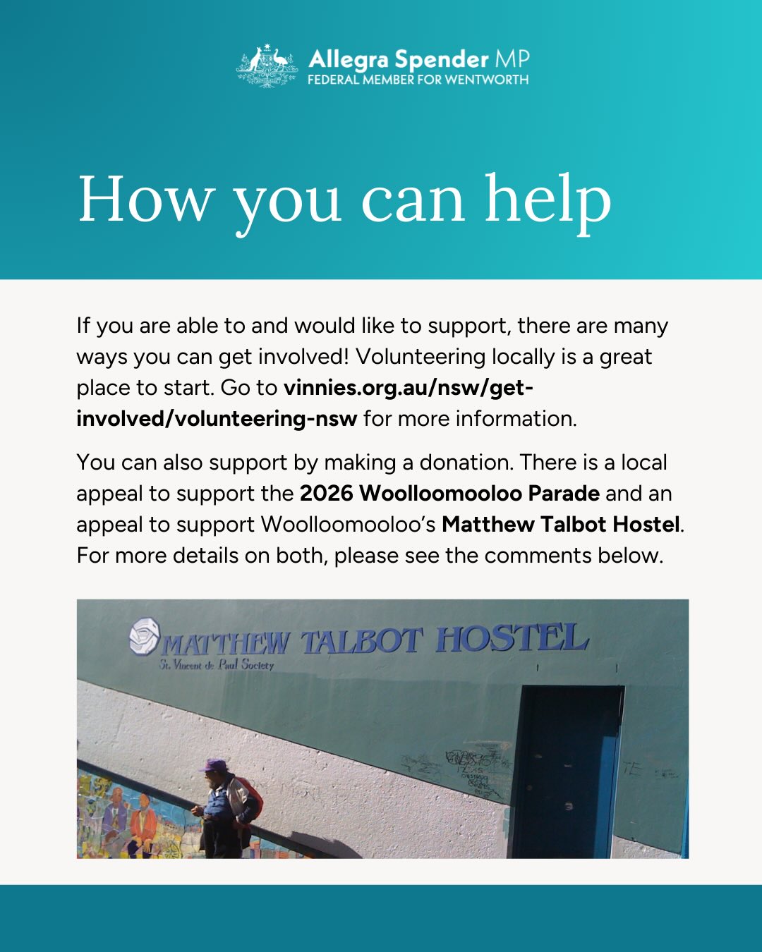 We're kicking off a new series this year, spotlighting one of Wentworth's local community organisations every month! To start things off, I want to highlight all the incredible work done by St Vincent de Paul Society - or Vinnies, as many of us say.