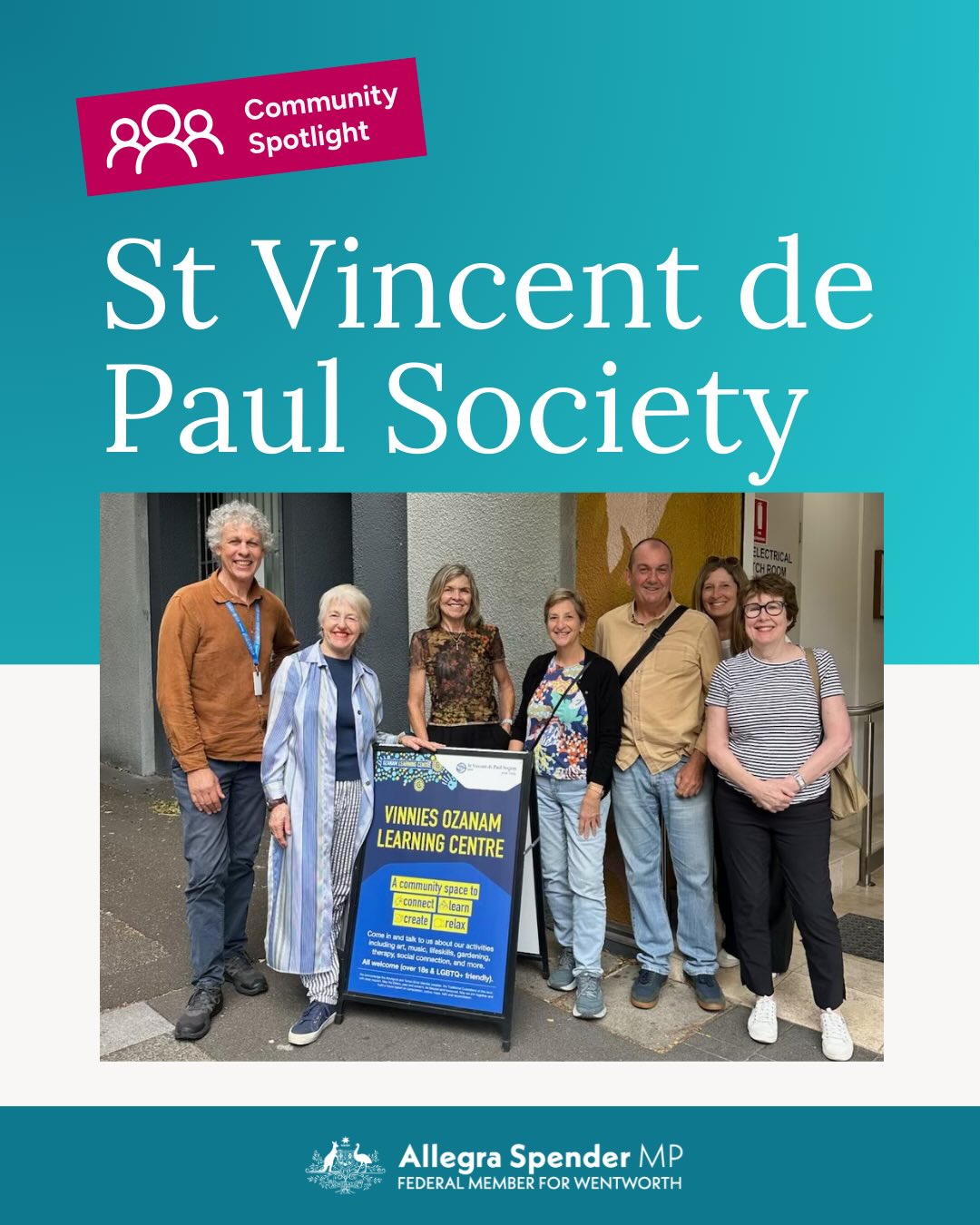 I have been so lucky to work with our local Vinnies members over the past few years and what has been clear is their impact is so far reaching, and deeply felt. They offer support in a variety of ways - whether it's providing housing, visa assistance, food, mental and physical health support. They're there for our community at the most difficult times, acting as a safety net for all Australians.
