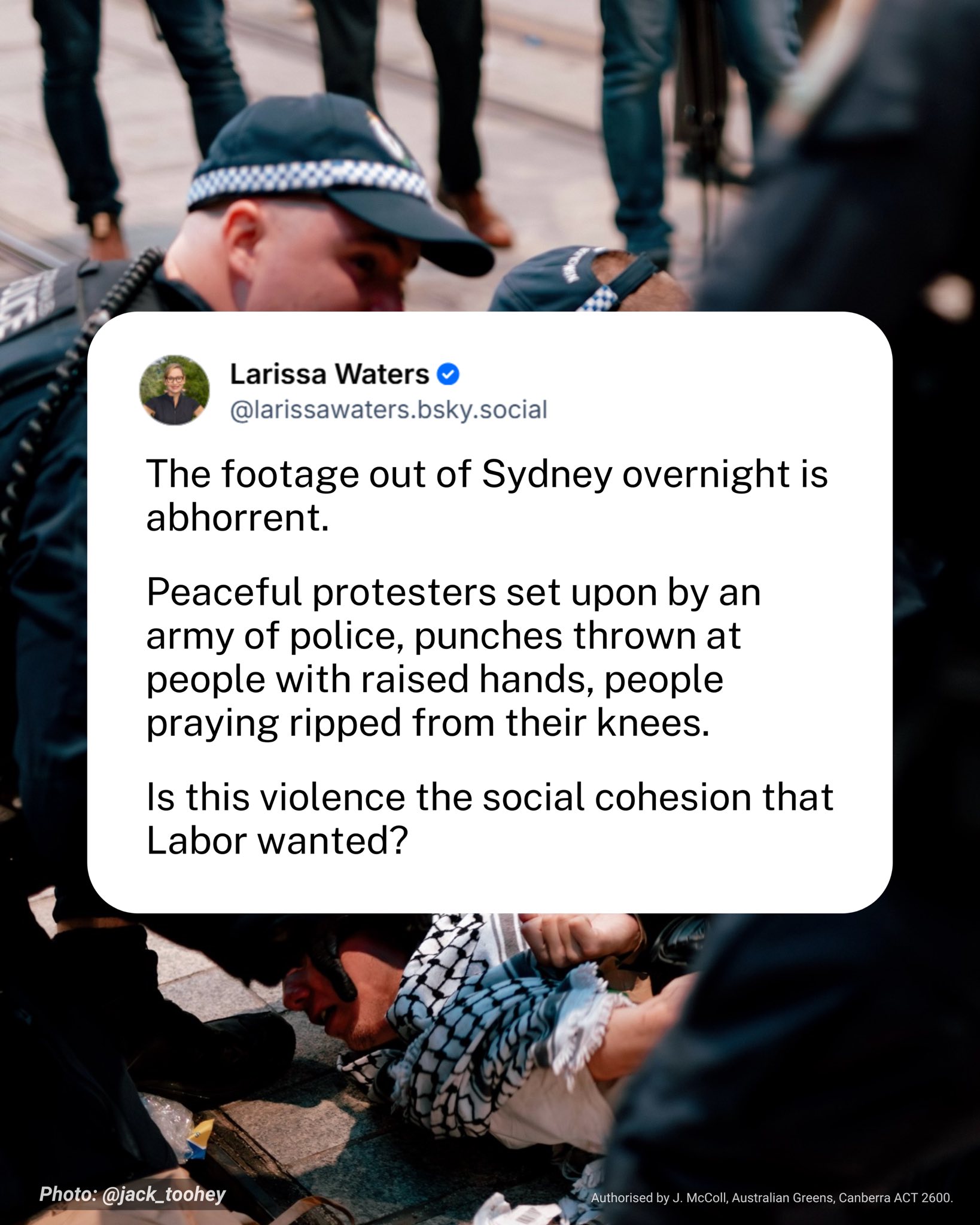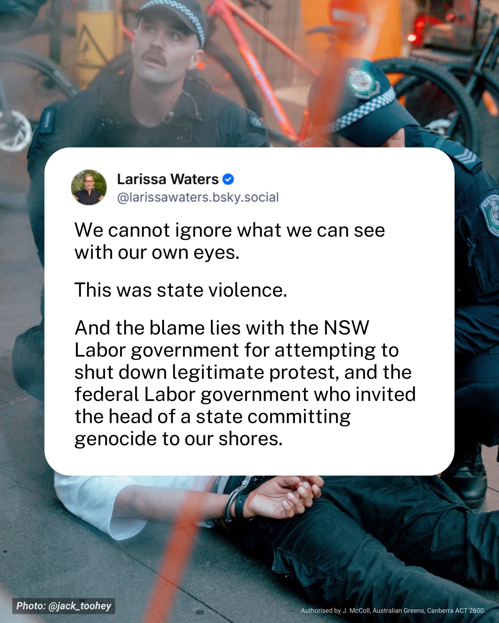 Solidarity with the thousands of protestors who turned out across the country yesterday to say that Australia must not be complicit in genocide.