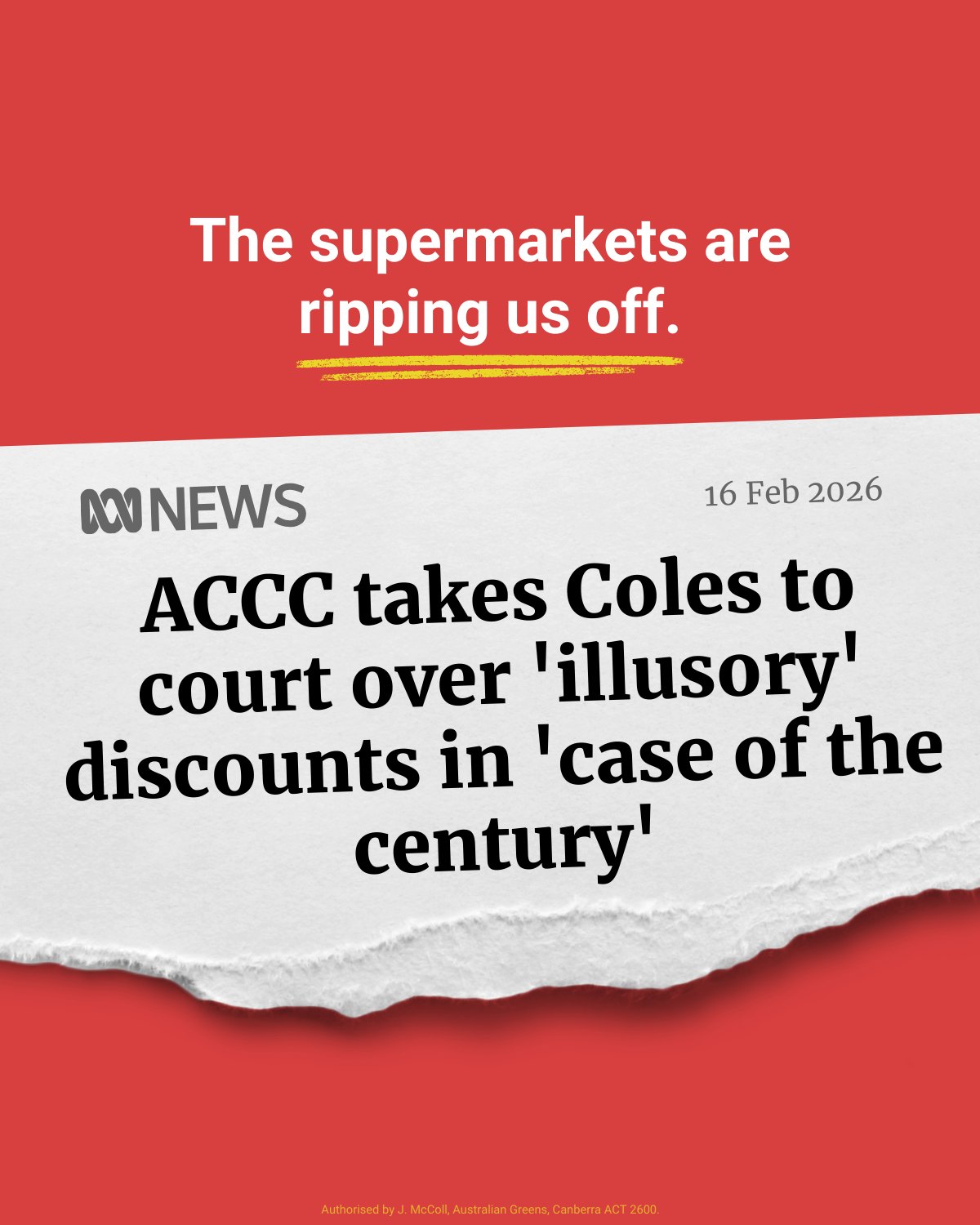 You can't afford groceries while Coles & Woolies are being taken to court for using fake discount claims to rake in mega profits.