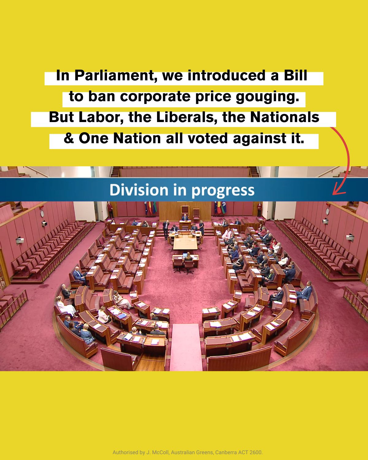 Meanwhile, the major parties & One Nation vote against banning corporate price gouging.
