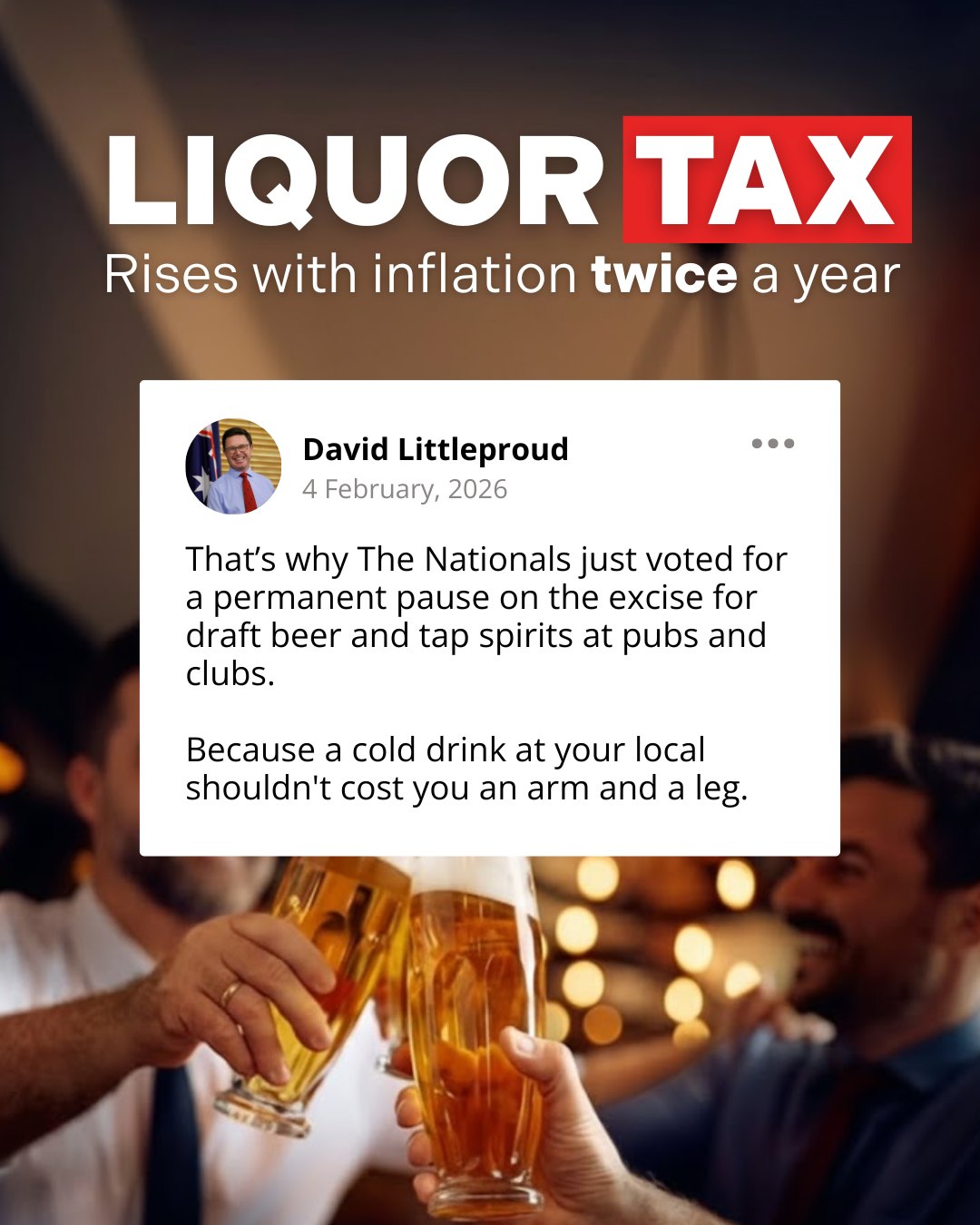 The Nationals just voted for a permanent pause on the excise for draft beer and tap spirits at pubs and clubs.