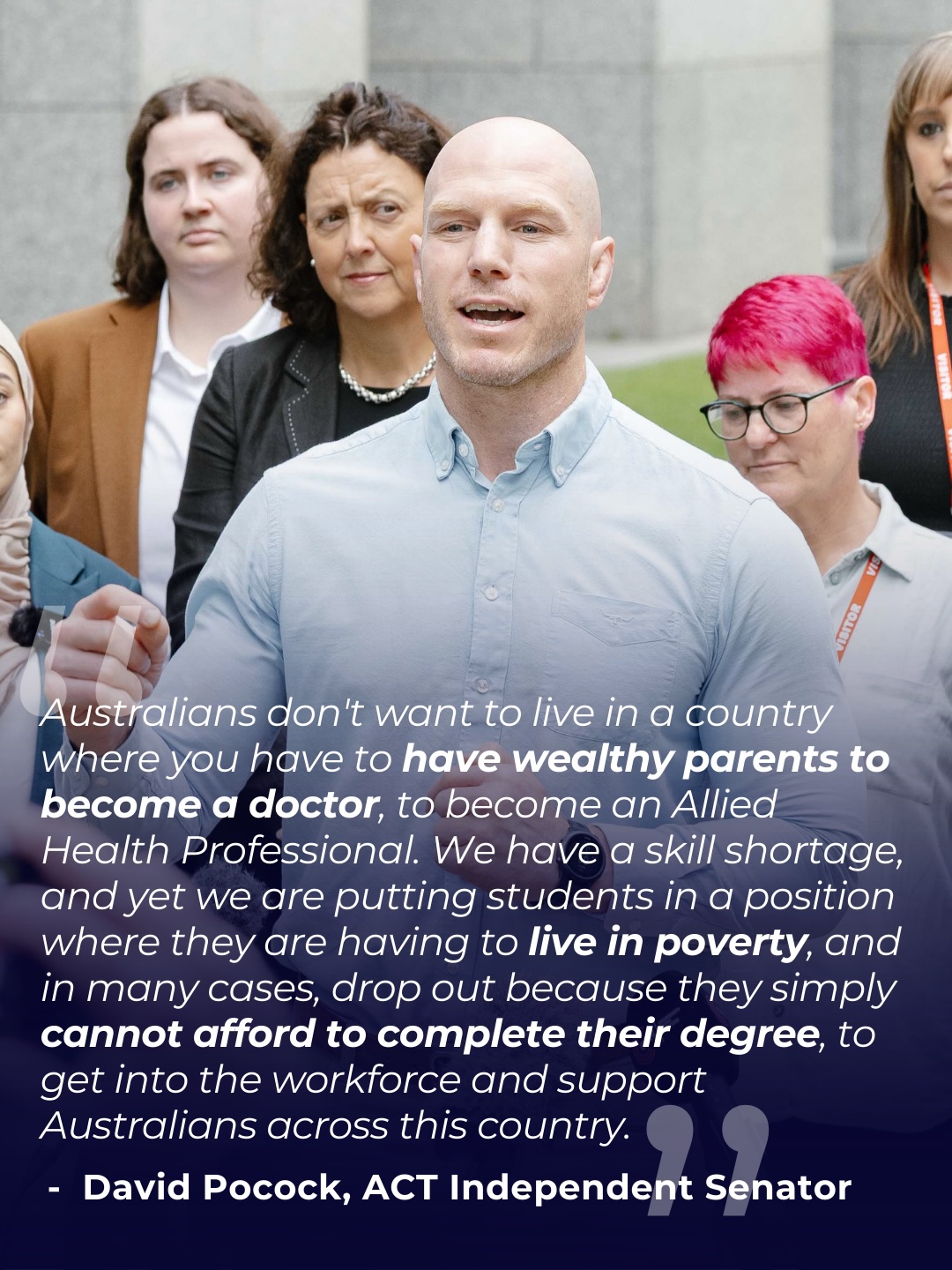 Today I stood with medical, pharmacy, OT, physio, podiatry, psychology, medical radiation and exercise physiology students to call on the Govt to provide means-tested support to all the healthcare students undertaking 1000's of hours of mandatory unpaid placements.