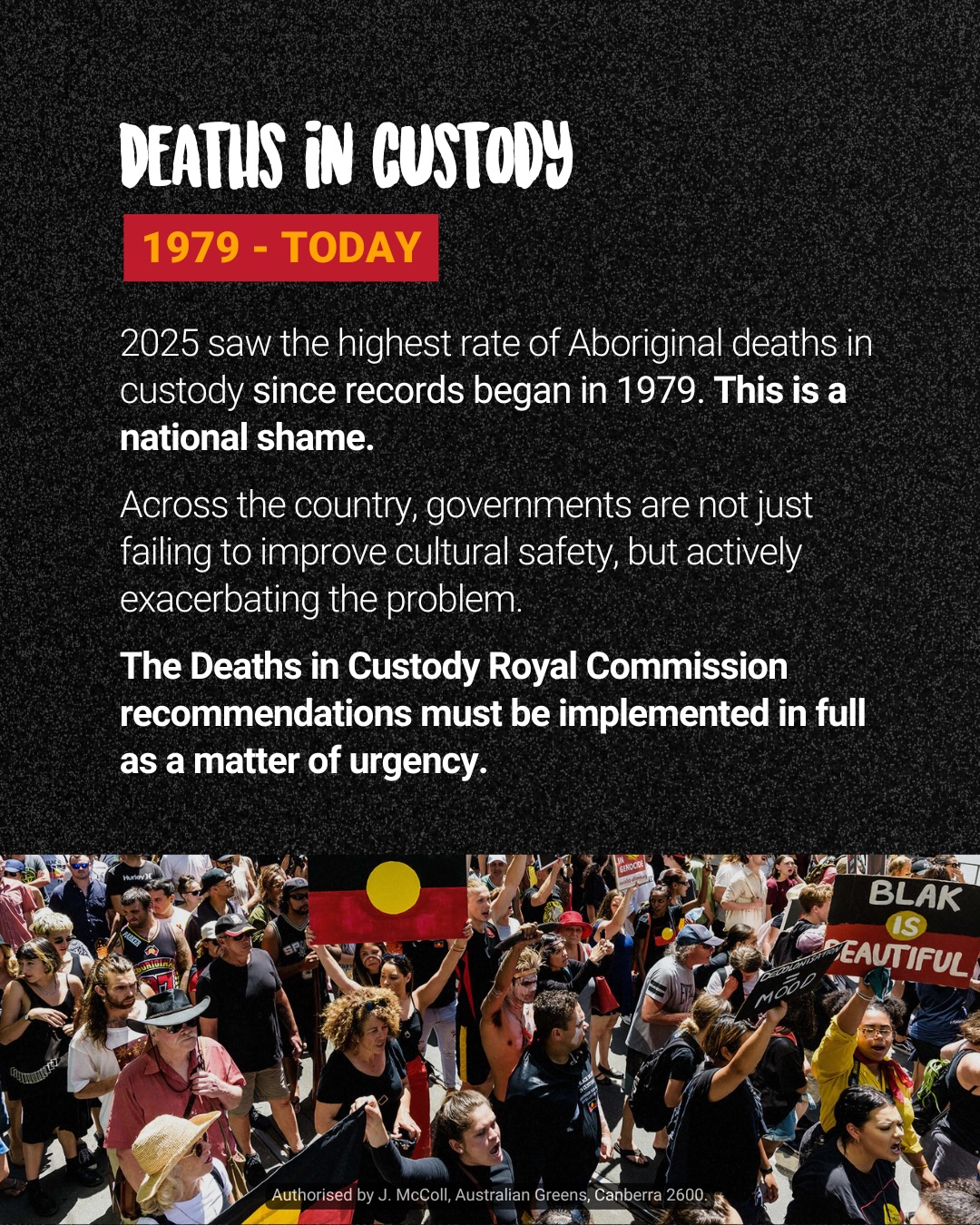 The Greens continue to fight alongside the Blak Greens and First Nations people for Treaty, Truth and Justice.