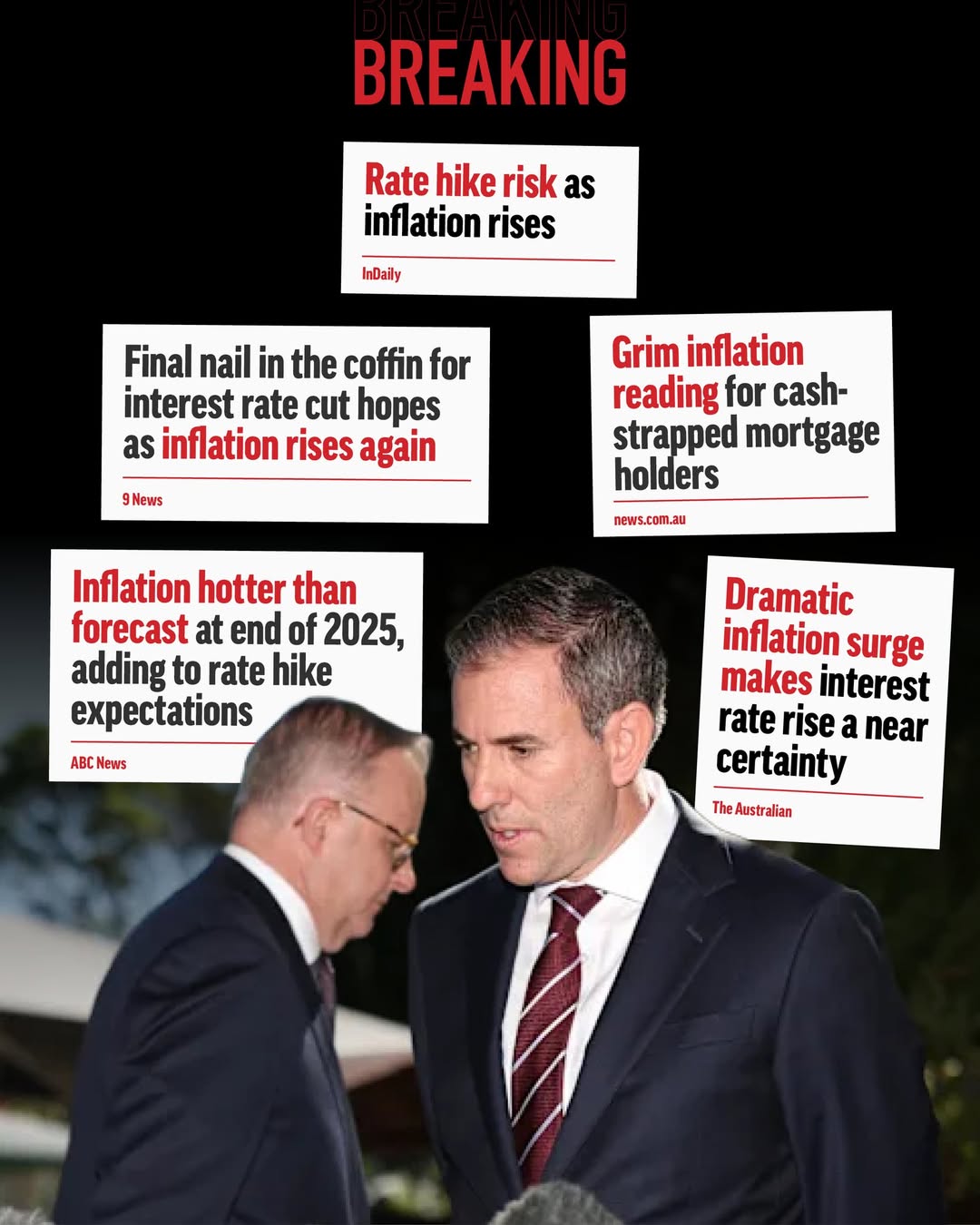 Liberal Party of AustraliaMore bad news for Australians.View Original | AusPol.co Disclaimer Post navigationLiberal Party: How has Jim Chalmers managed to blow nearly $60 billion since his last budget?... Liberal Party: UPDATE: Labor hasn't turned the corner with inflation...