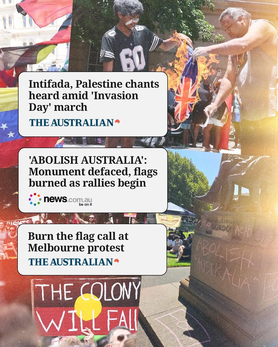 For a small handful of activists, agitators and the perpetually offended, they choose Australia Day to burn Australian flags, highlight foreign conflicts, graffiti and tear down monuments.