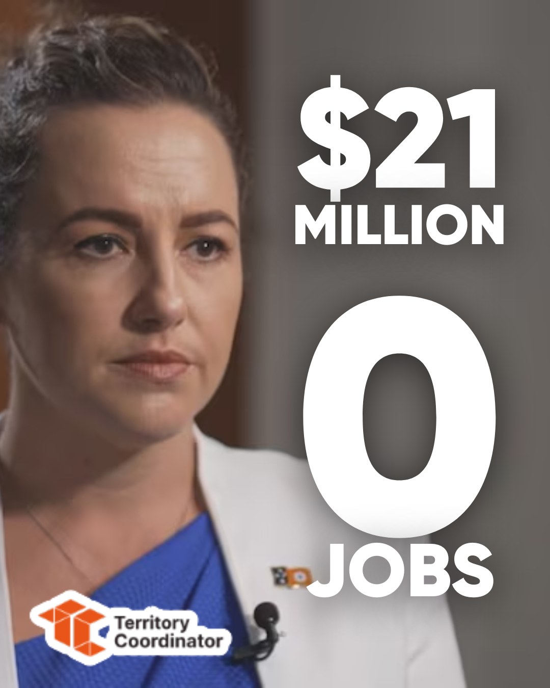 Whatever mistake you made today, it's unlikely to rival Lia Finocchiaro wasting $21 million on a Territory Coordinator with zero jobs created.