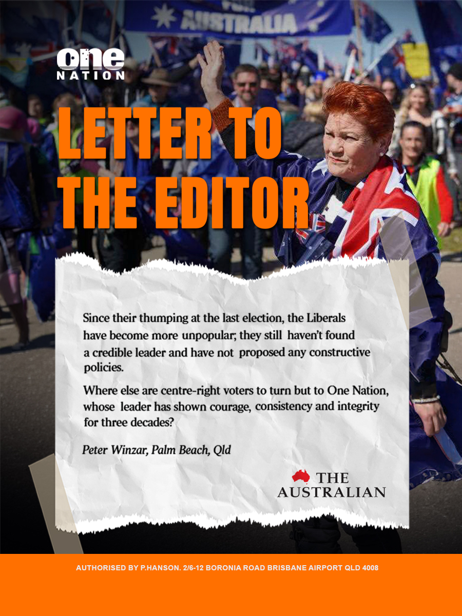 Voters to turn but to One Nation, whose leader has shown courage, consistency and integrity for three decades