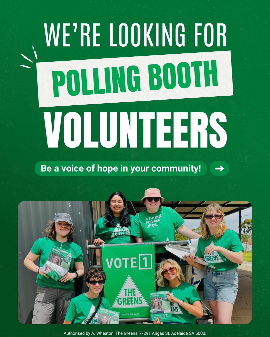 Whether it's your first time, or your 100th time - every moment you spend on a polling booth can help us bring more strong Greens voices into parliament!