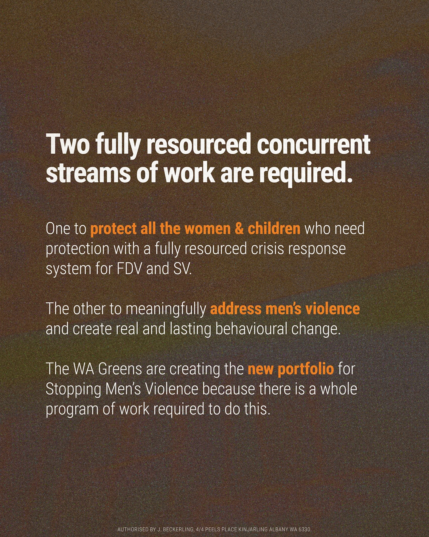 Today, we’re announcing a new portfolio for Stopping Men’s Violence, and calling on the Cook Labor Government for the full resourcing, system reform and leadership this crisis demands.